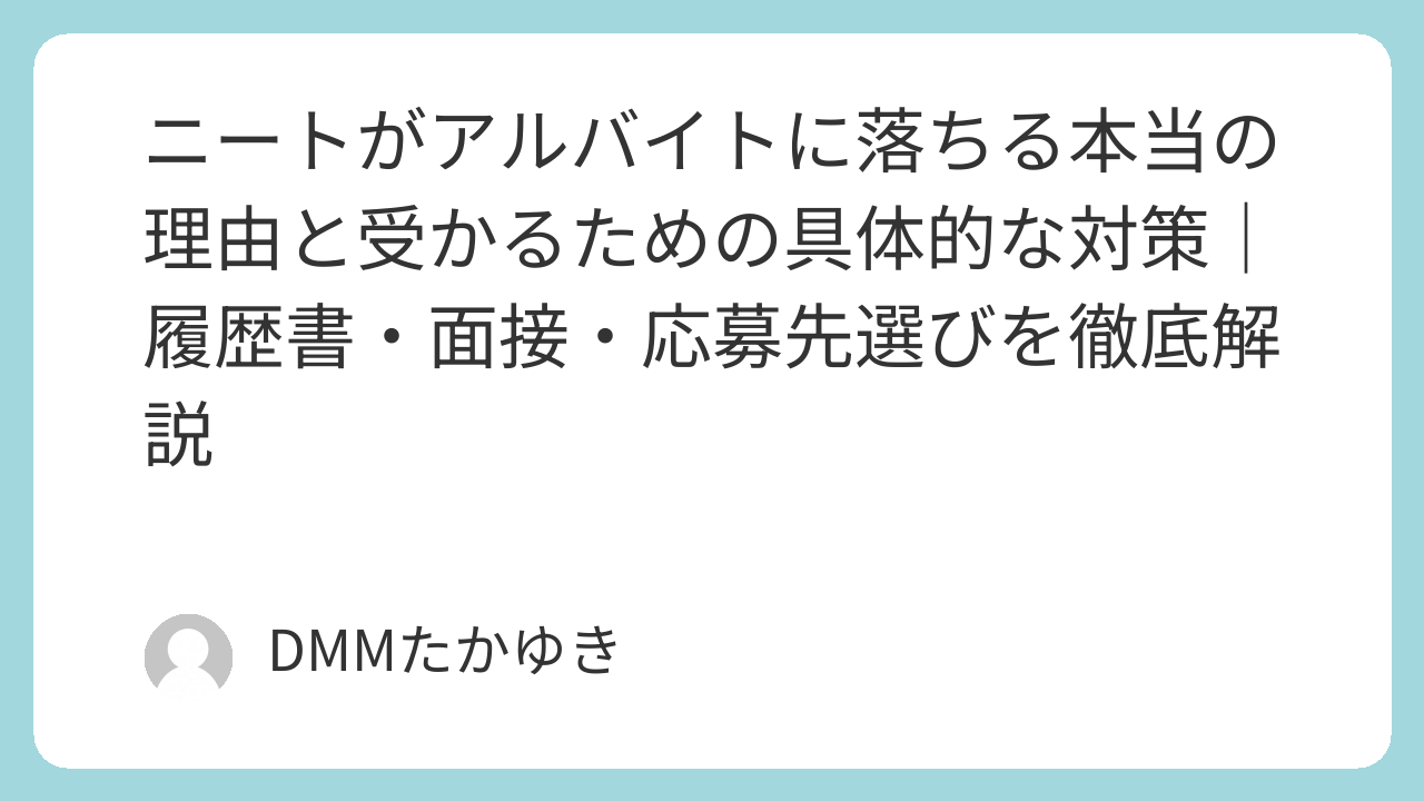 「ニートだからバイトに落ちる」のではなく、「ニートという状態をどう説明し、どう準備するか」で合否が大きく変わります。