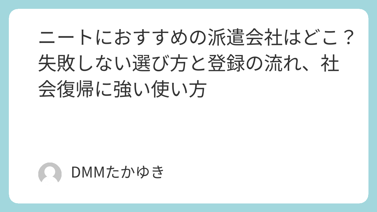 ニートにおすすめの派遣会社はどこ?失敗しない選び方と登録の流れ、社会復帰に強い使い方
