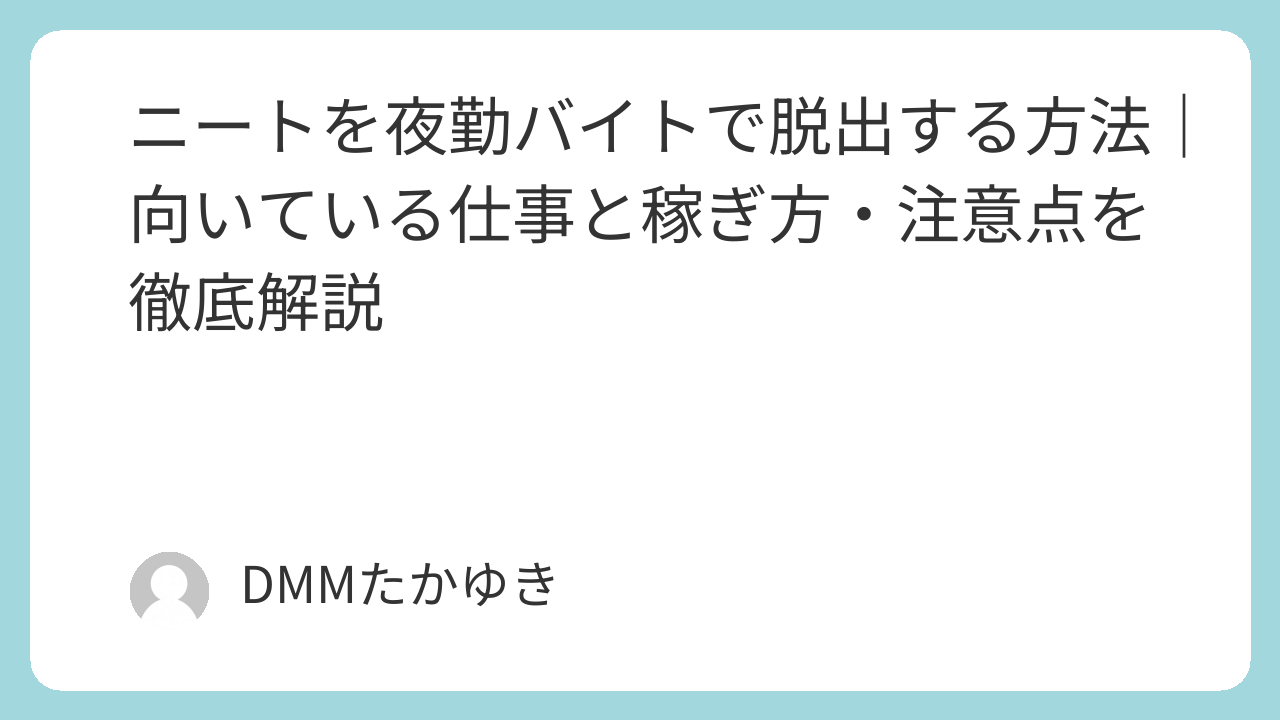 ニートから社会復帰したいが「いきなり普通の会社は無理」と感じる場合、夜勤バイトは現実的なスタート地点になりやすい働き方です。