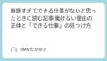 棚卸しの要点は、得意不得意を性格で終わらせず、できる作業と苦手な作業を具体的に書き分けることです。 その上で、苦手を避けるのではなく、苦手が出にくい職場環境や業務構造を選ぶ視点に変えると、できる仕事が一気に増えます。