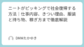 自己PRが書けないときは、まず過去の経験を洗い出し、強みの共通点を探す方法が紹介されています。 大きな成果や表彰実績でなくても、褒められたことやこだわっていたことを棚卸しすればよいとされています。 ニートの場合は、家事、学習、家計管理、健康管理、生活リズムの立て直しなどを行動として整理し、どんな工夫をしたかまで書ける形に整えると自己PRになります。